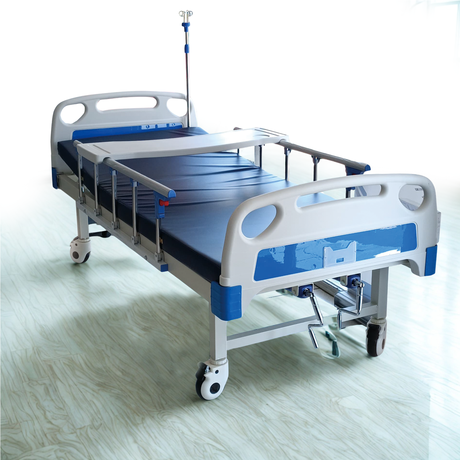 CAMA HOSPITALARIA IMPORTADA 2 MOVIMIENTOS MECANICA C/COLCHÓN Y MESA DE ALIMENTACIÓN
